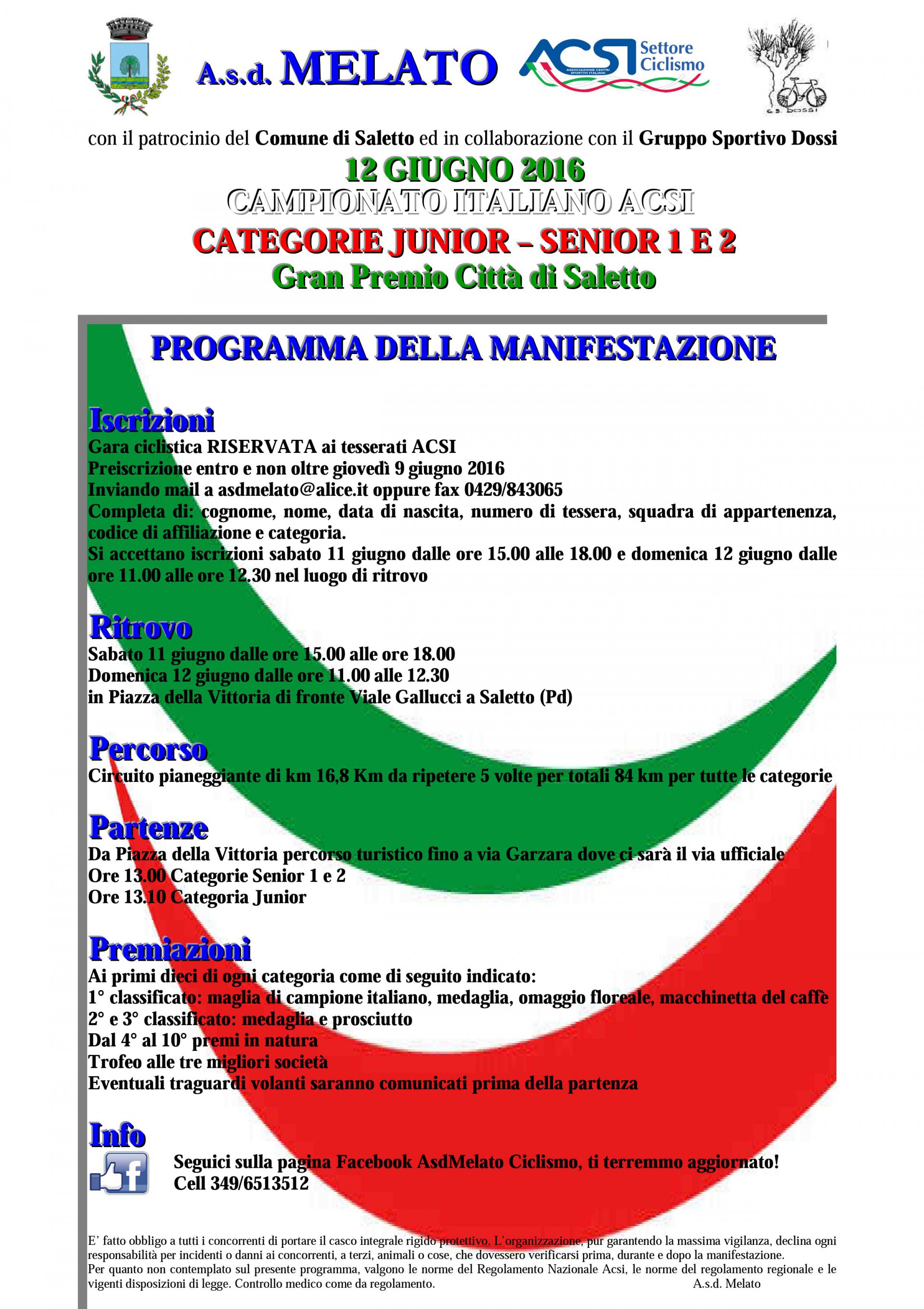 Questa gara ciclistica è riservata ai tesserati ACSI.